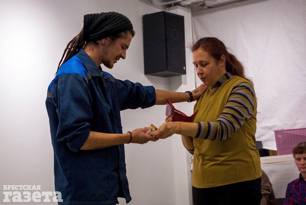 Изобретатель нестандартной театральной технологии культовый бразильский режиссер Аугусто Боаль полагал: смысл театрального искусства состоит в том, чтобы, помогая человеку увидеть путь к решению сложных жизненных проблем, способствовать трансформации общества к лучшему. Несмотря на то, что с таким форматом театрального искусства мир начал знакомится еще в 1970-е годы, для брестчан он – в диковинку. Воплощением столь необычного проекта в нашем городе занялся коллектив театра Homo ludens (в переводе с латинского «Человек играющий»), что функционирует на базе Брестского Клубного дома, где вот уже пять лет занимаются реабилитацией и социализацией людей с психическими заболеваниями, помогая им восстановить утраченные вследствие болезни навыки и найти свое место в жизни. Дружеское участие позволило использовать площадку Простанства КХ для организации театрального действа.