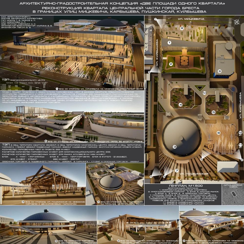 Брестский горисполком выложил все 11 проектов-участников конкурса «Две площади одного квартала» с фото и аннотациями