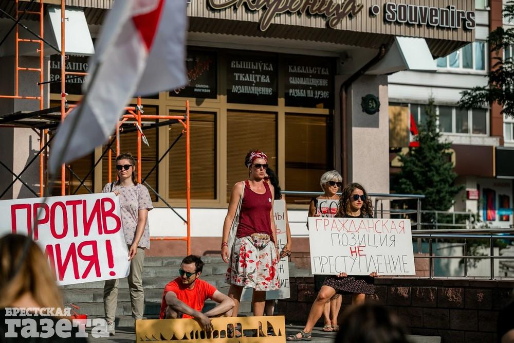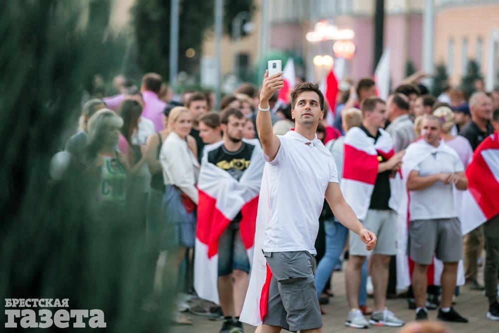 Мирные акции протеста в прошедший четверг прошли не только на центральной площади Бреста, но и на пешеходной улице Советской. Мирные протестующие продолжают выходить на улицы с плакатами и бело-красно-белыми флагами.
