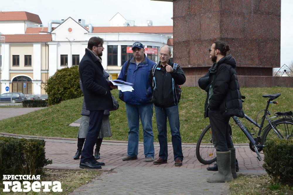 Днем 25 марта главный архитектор Бреста Николай Власюк встречался возле Городского сада со скульпторами по вопросу оформления огромного камня, который не так давно установили в центре парковой зоны.