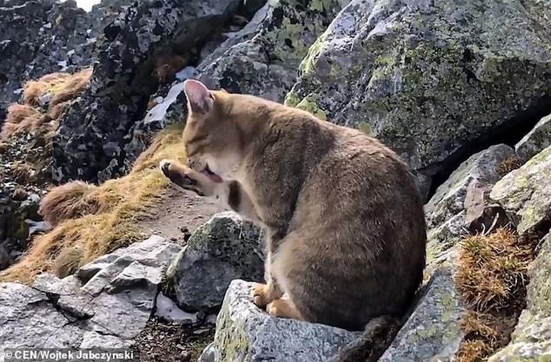 Как рассказал поляк, кот, сидевший на горе высотой 2 500 метров, вовсе не удивился появлению человека. Войцех стал ему интересен только во время обеда — кот пришел на запах еды.