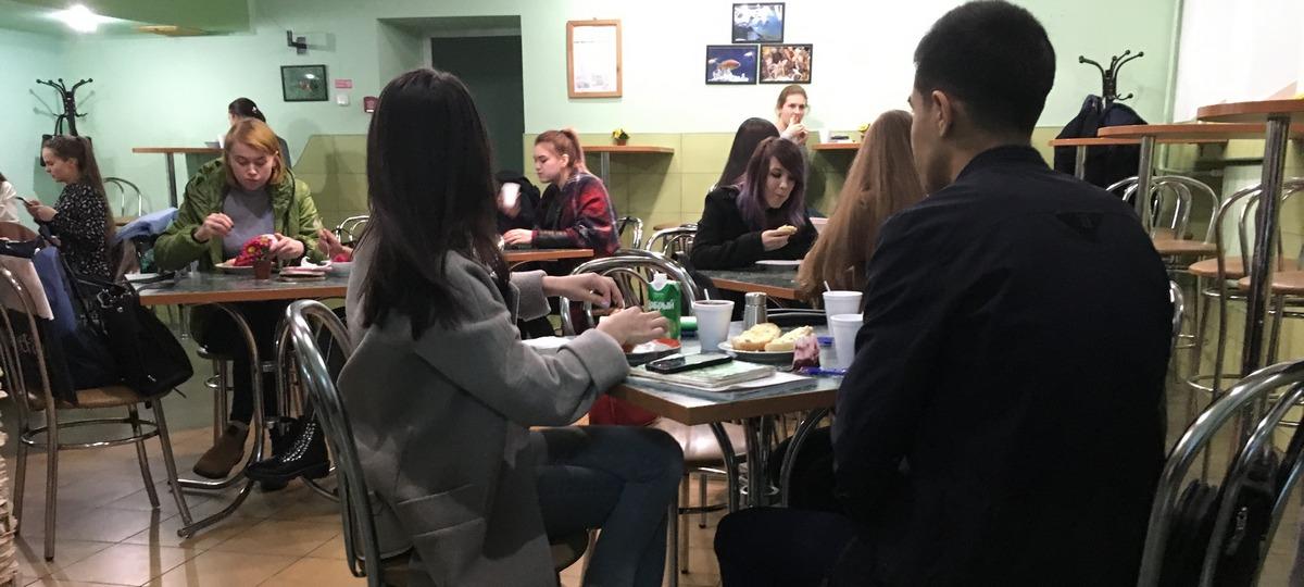 — Столовая в целом устраивает, но все же это не то место, где можно полноценно покушать, скорее, там есть возможность перекусить смаженкой и чаем. Можно, конечно, много всего купить, чтобы плотно покушать, но это дорого. У меня за такой обед выходило от 3 до 5 рублей. Но мне нравится качество продуктов — оно хорошее. По поводу обслуживания ситуация обратная: иногда могут не успеть помыть подносы или людям вилок не хватает. В первую очередь хотел бы изменить время работы столовой, чтобы она раньше открывалась, а не в 10, и чуть позже закрывалось, так как не все пары заканчиваются в 16:30.