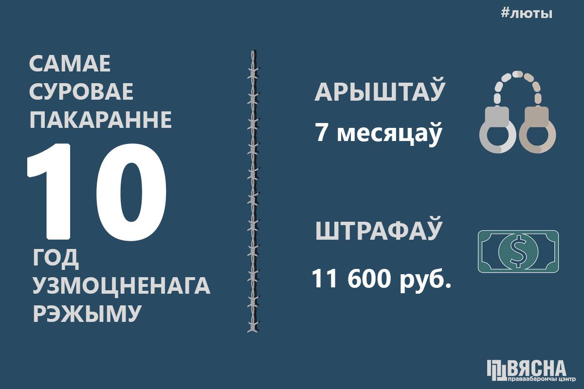 Самое суровое наказание в феврале 2021 года получил житель Бреста Александр Кордюков — 10 лет лишения свободы за сопротивлением милиции с применением насилия, убитый Геннадий Шутов по этому же делу признан виновным посмертно.