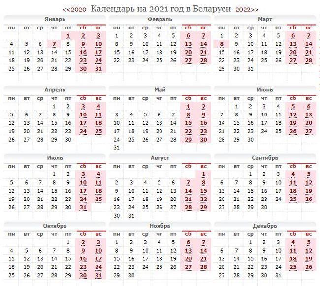 Совет министров постановлением №635 от 9 ноября утвердил перенос рабочих дней в 2021 году. Их будет всего два: праздничные дни в основном выпадают на выходные.