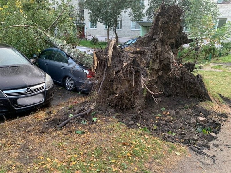В результате были повреждены два строения и пять легковых автомобилей. Пострадавших нет. Работники МЧС проводили работы по распиловке и уборке упавших деревьев.