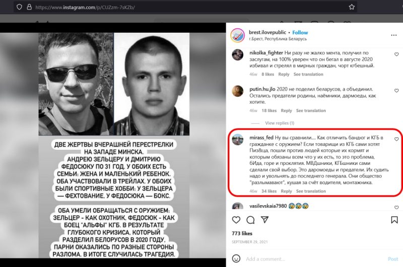 Мирослав был задержан 30 сентября 2021 года. За день до этого, согласно обвинению, он оставил комментарий на странице в Instagram «brest.ilovepublic»: