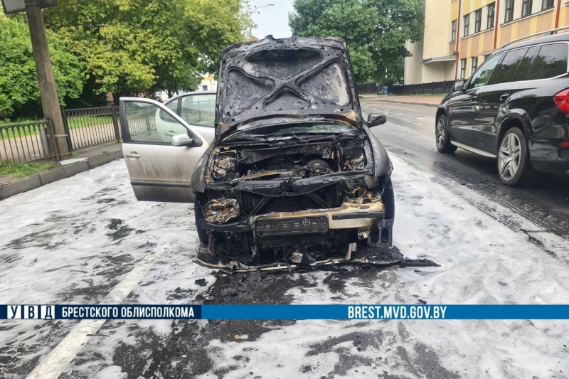 В центре Бреста неожиданно загорелся автомобиль. Его потушили спасатели
