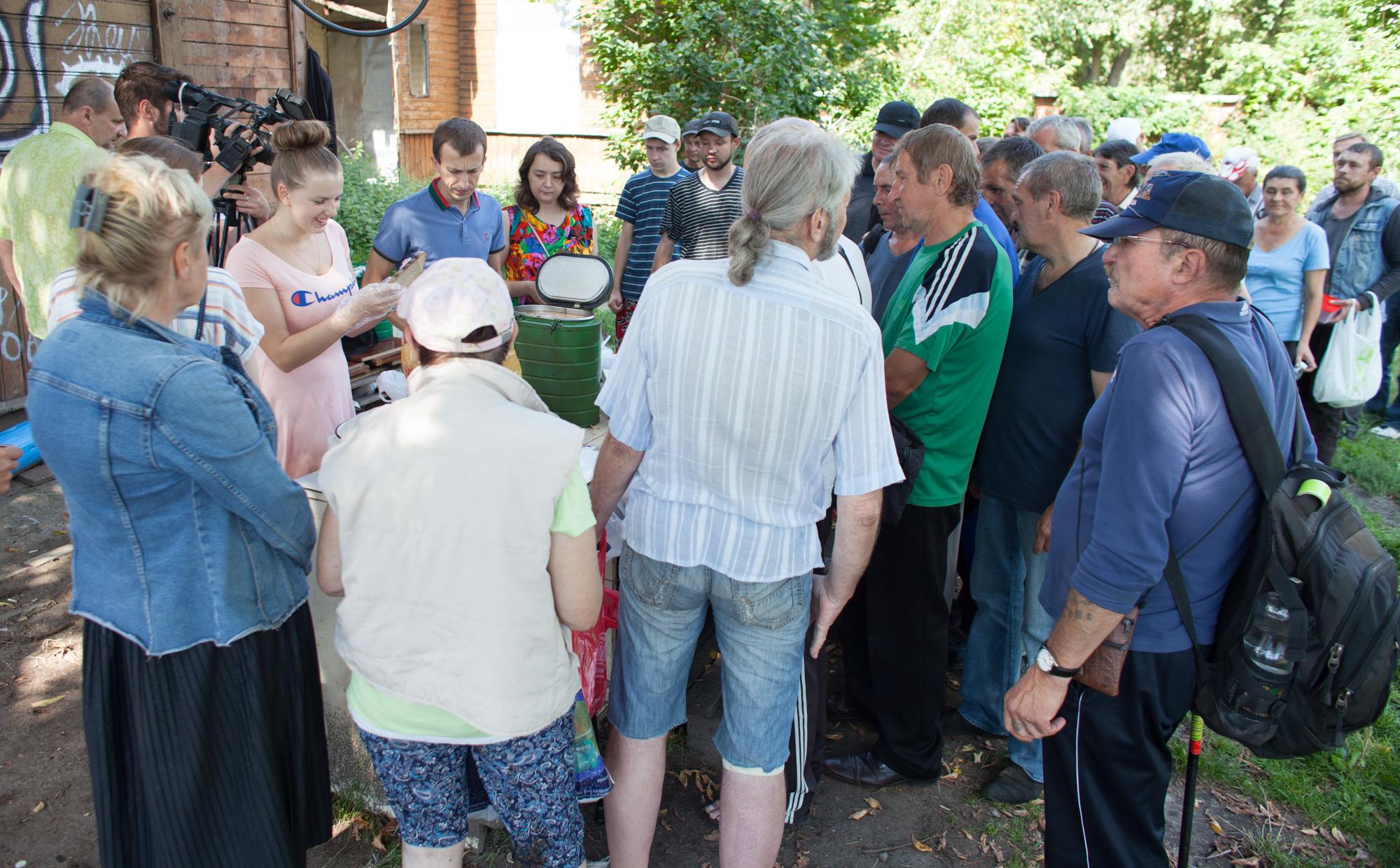 За собственные средства они варили еду и привозили ровно в 12 часов в назначенное место в центре города. Таким образом, здесь получали пищу около 60 человек.