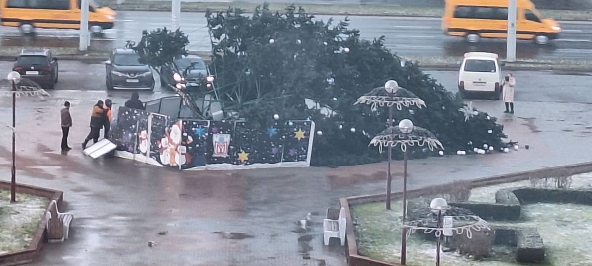 Брестский горисполком позже сообщил, что повреждения, нанесенные стихией, оказались достаточно серьезными. Металлический каркас не выдержал и сломался в двух местах. В итоге упавшую елку решили убрать, а вопрос с установкой новой елки еще не решили, но чиновники пообещали оперативно информировать о ситуации.