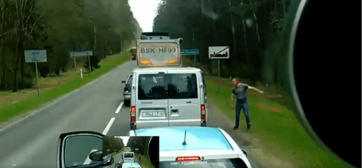 На нем зафиксирован момент, как из машины на белорусских номерах выбрасывают на обочину мусор. Водитель автомобиля, в котором был установлен регистратор, вышел, подобрал одну из выброшенных коробок и швырнул через открытое окно в машину, из которой ее выбросили.
