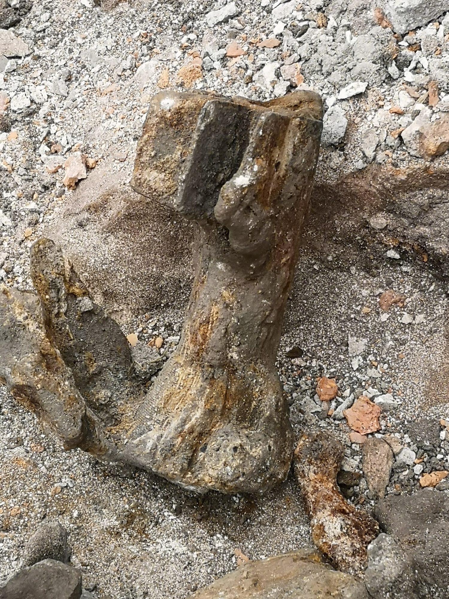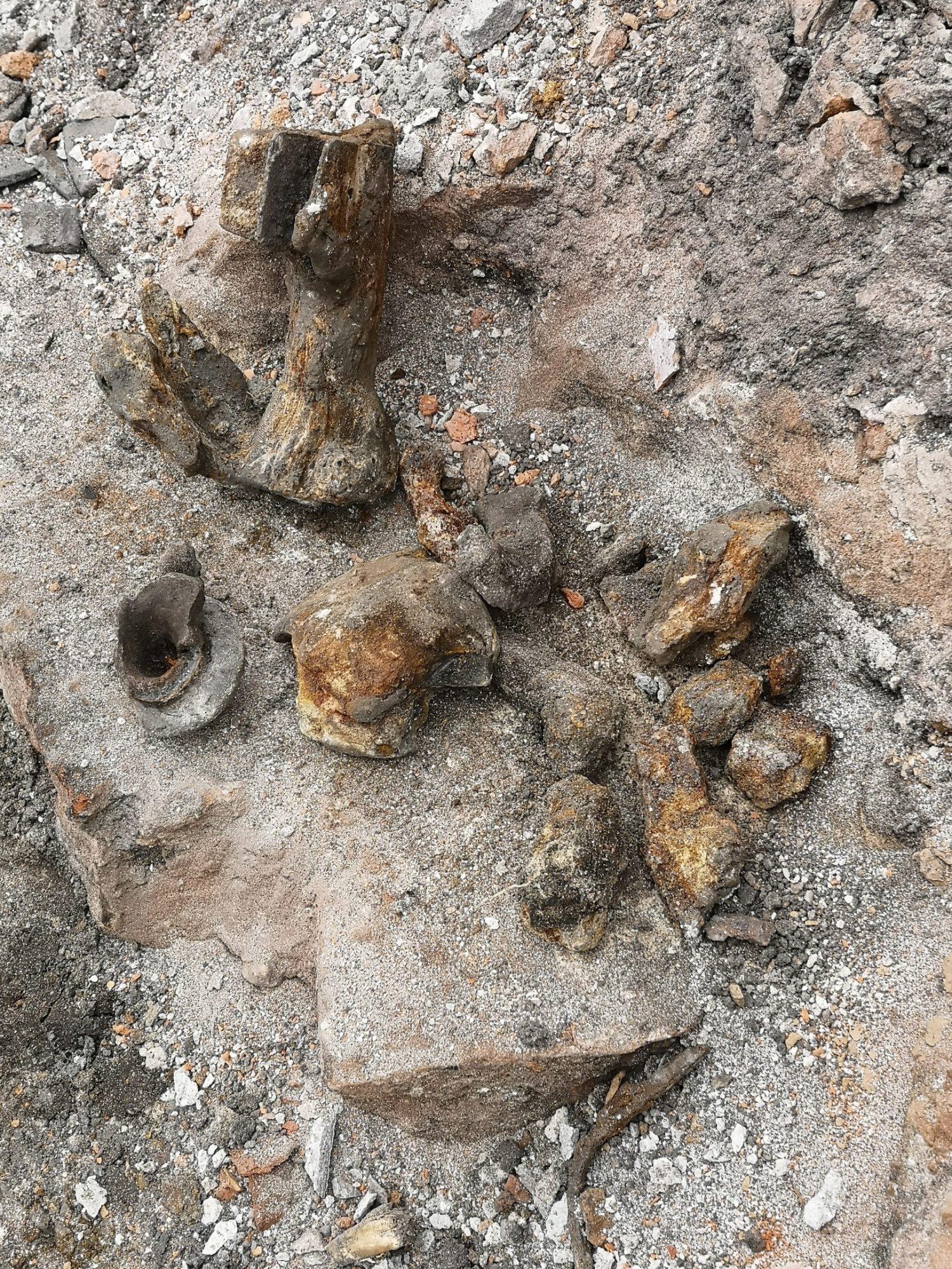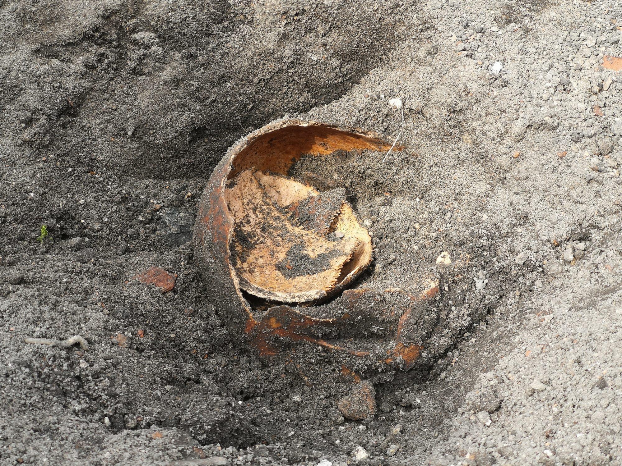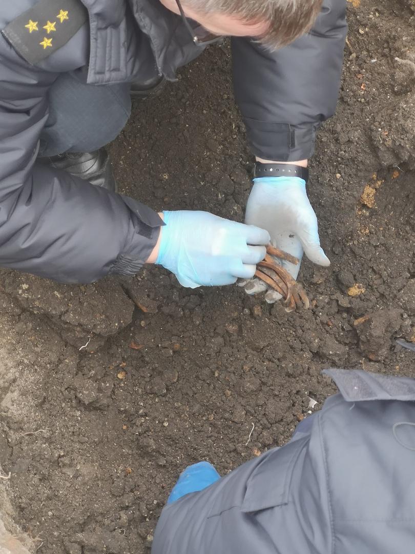 Среди сопутствующих находок — кости животных, хвостовая часть мины и осколки снарядов.
