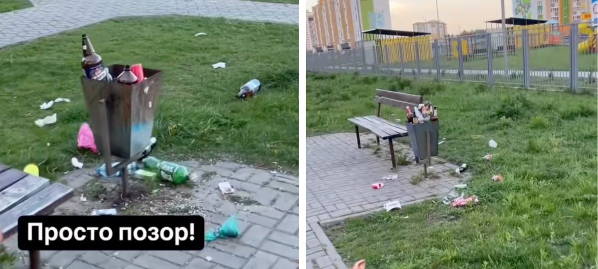 Под ногами — пластиковые бутылки, пакеты, остатки еды. Мусор валяется даже возле скамеек, а урны — доверху набиты отходами. Под видео десятки комментариев, и каждый видит проблему по-своему.