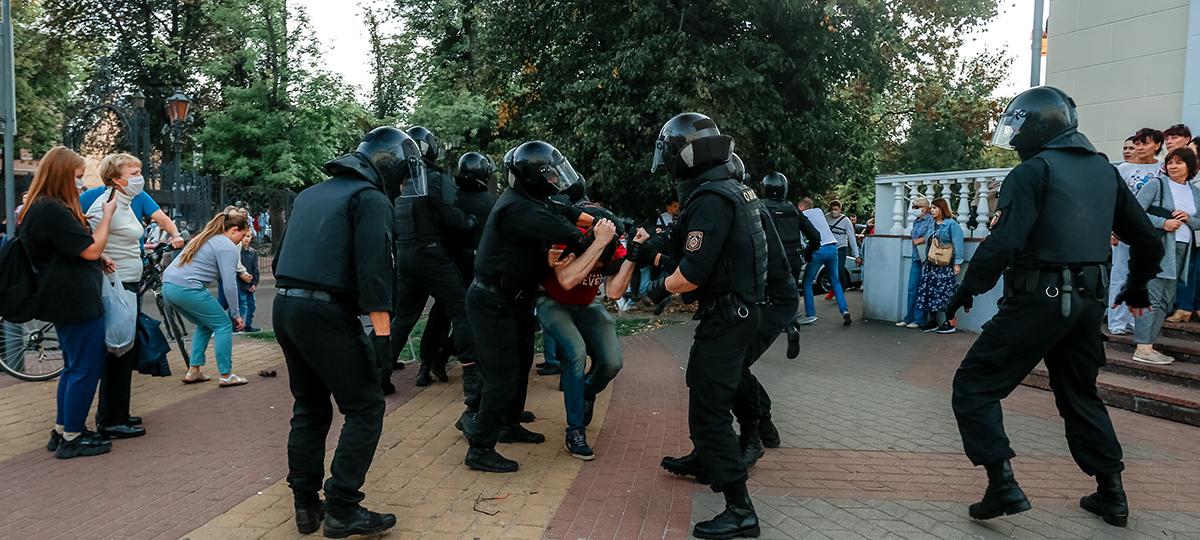 «В суде Ленинского района г. Бреста, на улицах произвольные задержания, в том числе журналистов. Предположительно сейчас как раз будет идти процесс над двумя», — прозвучал ответ. — «В сегодняшнем законе о массовых мероприятиях субботние, воскресные марши разрешены? Люди возмущены несправедливостью и выходят. Но эти выходы не санкционированы. Что должны делать силовые структуры? Закрывать глаза? Они защищают закон и порядок. Так?» — «Нет».