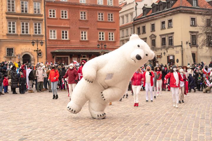 На акцию 7 февраля вышла не только оппозиция — возле Брестской крепости замечена патриотичная компания людей с флагами Беларуси, России и СССР. Один из присутствующих исполняет «Катюшу». Рядом дежурит ОМОН.