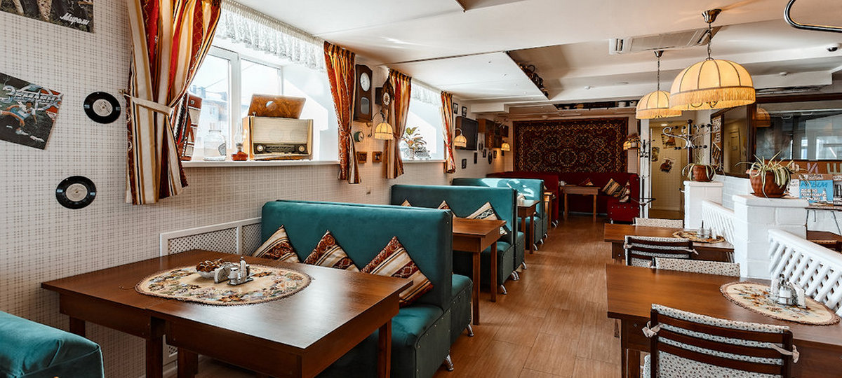 Кафе — бар имеет общую площадь 118 кв.м. Изолированное помещение с отдельным входом расположено в цокольном этаже.