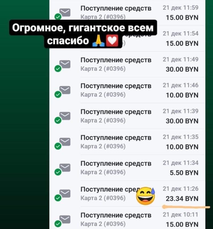 В итоге собрали больше, чем нужно: около 2 000 рублей. Александра рассказала, что суммы приходили чуть ли не каждые 15 минут. Кто-то даже перечислил символические 23.34 рубля (по мотивам популярной в Беларуси статьи КоАП).