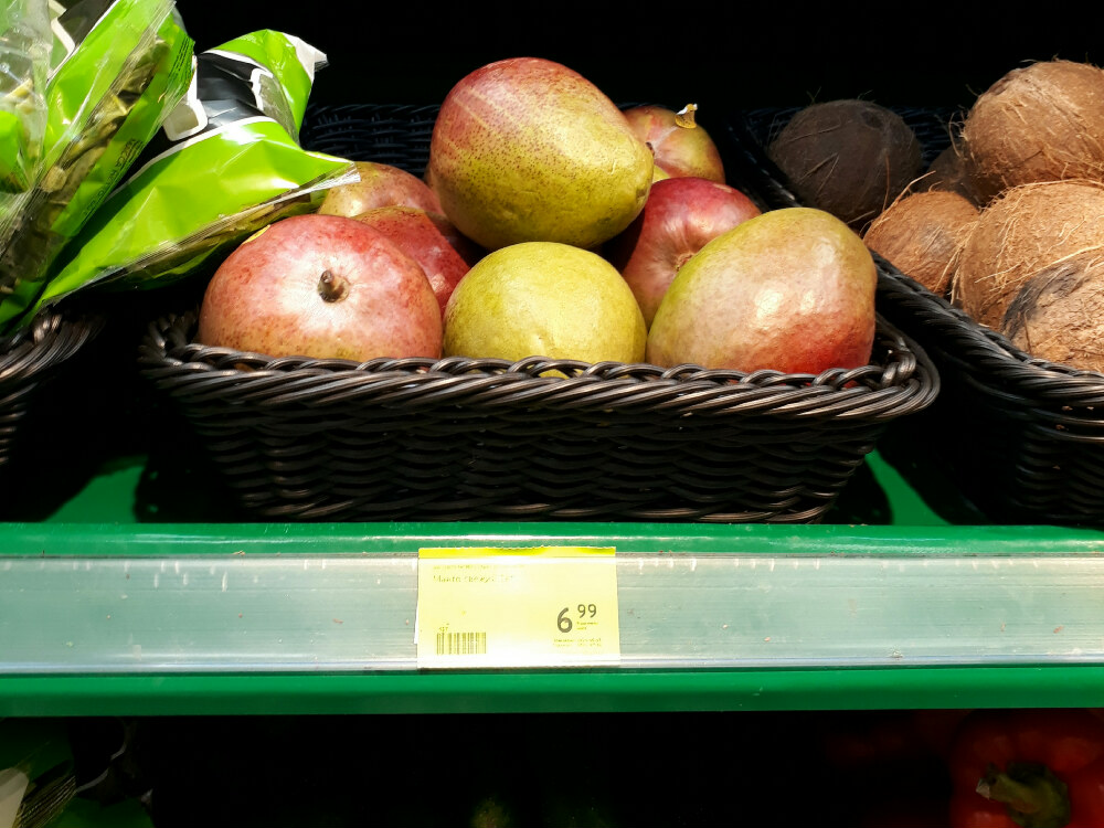 Самое примечательное в предыдущем чеке — яблоки, как обозначено, украинские. В конце зимы они стоили 9,9 грн. (92 копейки) за килограмм. Насколько помнит Елена, эти яблоки она покупала на скидке. Но в целом во Львове купить украинские яблоки по цене до 15-16 грн. и недалеко от дома не проблема. Елена не так редко покупает их с 50% скидкой.