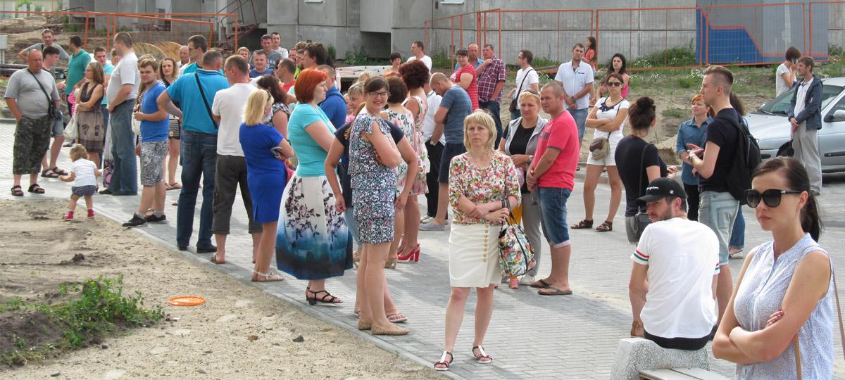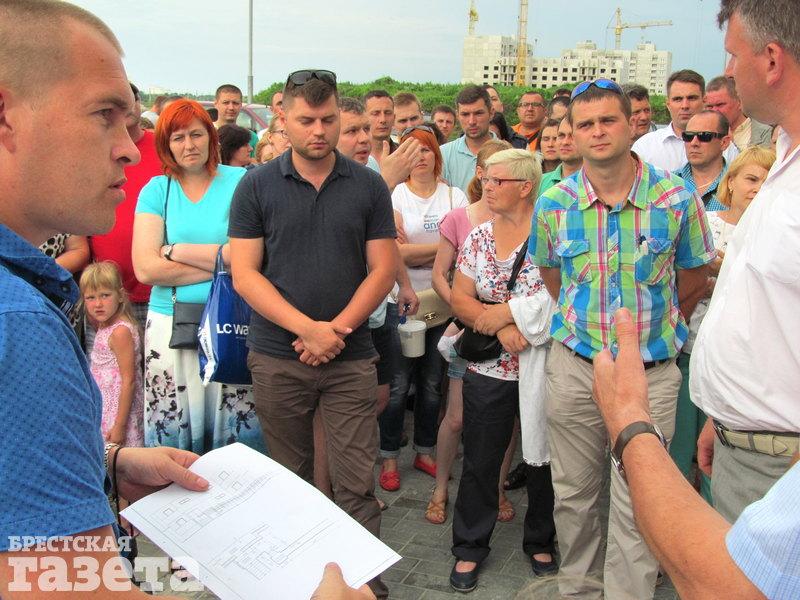 Дольщики неоднократно обращались по этому вопросу в горисполком, в «Брестжилстрой», звонили на прямую линию председателю облисполкома. Поэтому вечером 29 июня к жильцам приехали чиновники и главный инженер компании-застройщика.