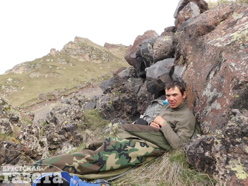 Когда Дима выезжал из Бреста, его рюкзак весил более 20 килограммов. При подъеме на Эльбрус он полегчал примерно наполовину: многое из содержимого рюкзака он надел на себя, а что-то оставил с другом в базовом лагере.
