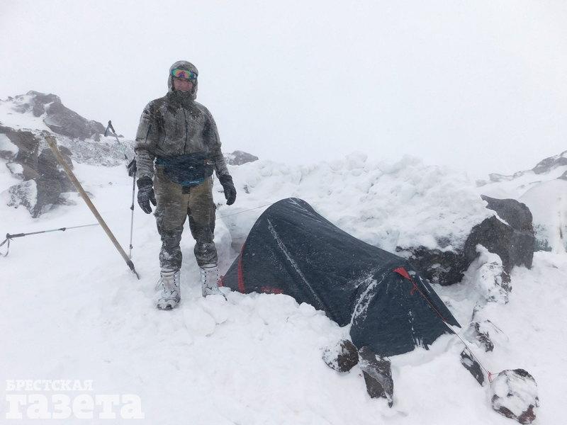 «Мы сначала поднялись до отметки 3 450, там переночевали, потом я поднялся до 4 700 и вернулся на 3 450, переночевал, а потом поднялся на отметку 4 100. Там начался ураган, и два дня я был в палатке. На второй день в полночь я пошел на вершину. Поднялся где-то за 16 часов и на 4 100 обратно спустился. Можно и быстрее, но был очень сильный ураган», — рассказывает брестчанин.