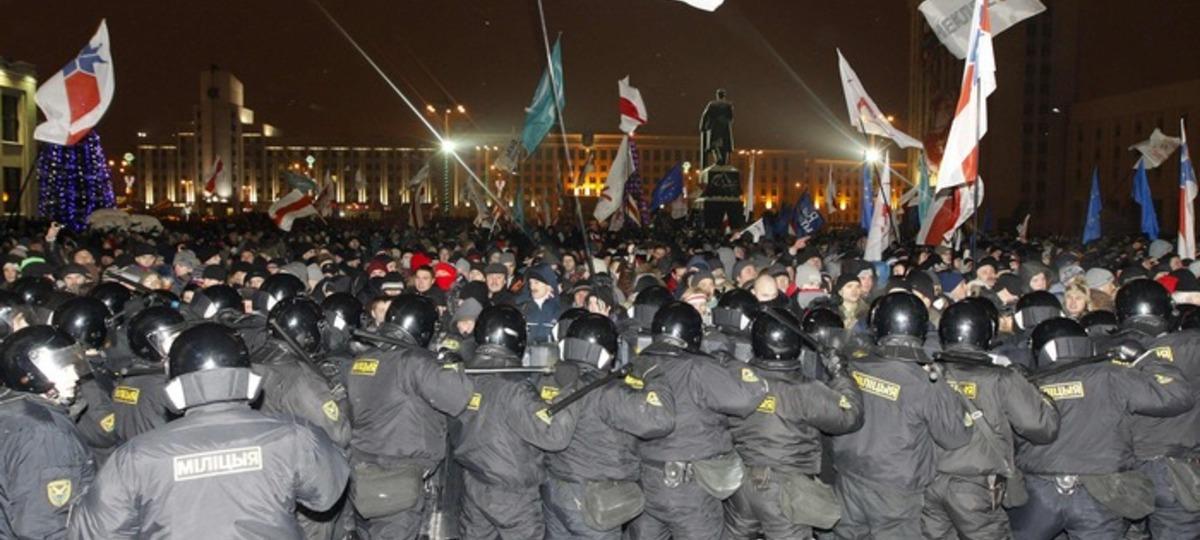 В знак протеста против результатов выборов на Октябрьской площади в Минске на акцию протеста собрались десятки тысяч человек, которые затем прошли по проспекту Независимости к Дому правительства. Там группа молодых людей сначала выбила несколько окон, а потом разбила стеклянные двери Дома правительства. Другие участники акции пытались воспрепятствовать этому, но безрезультатно, пишут naviny.by.