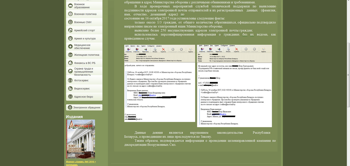 16 октября на сайте Министерства обороны появилась информация, что только треть граждан, подписавшихся под обращением против дедовщины в белорусской армии, официально подтвердили, что направляли запросы в адрес министерства.