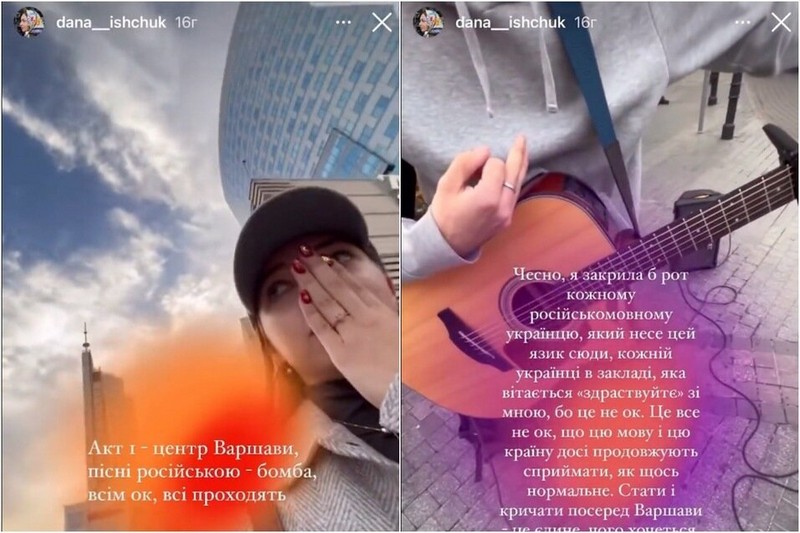 «Как мне иногда хочется подойти к каждому русскоязычному украинцу в Варшаве и рассказать ему о языке агрессора. Не белорусы привезли бешеное количество русского языка в Польшу, а именно украинцы. Только в Беларуси за язык сажают и избивают, а украинцам просто пофиг».
