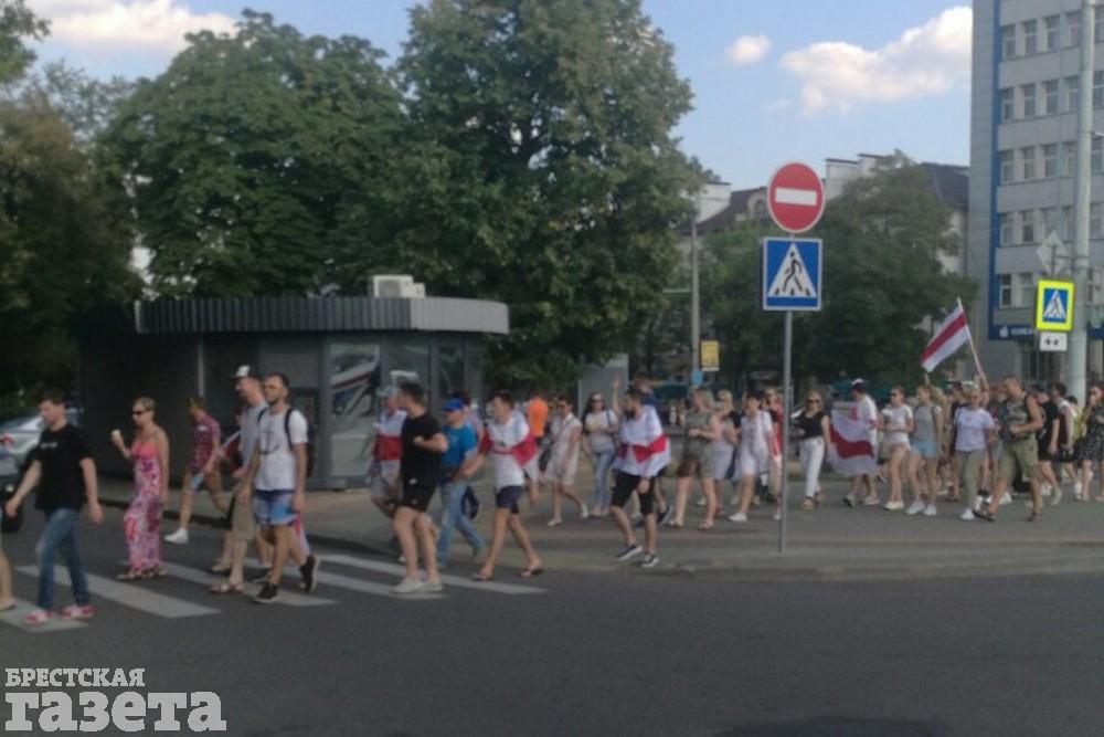 Часть из них пошла по улице Советской, скандируя «Далучайся!», «Верым! Можам! Пераможам!» и «Брест выходи».