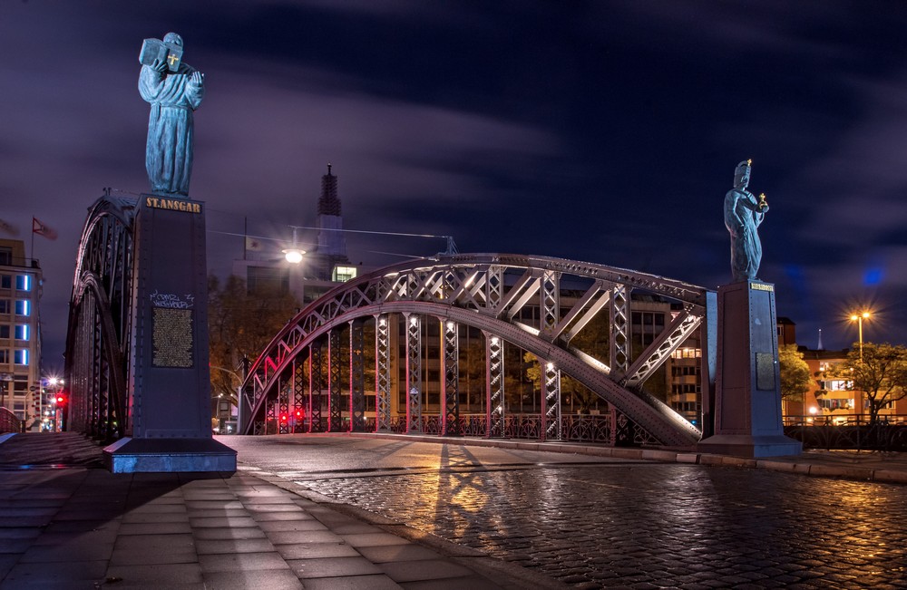 Расположенный в 100 километрах от морского побережья Гамбург является крупным портовым городом. Это самый большой порт Германии и второй по величине в Европе. Живописности ему добавляют каналы, ручьи и мосты. До середины XIX века большинство из них возводили из дерева, но после разрушительного городского пожара 1842 года стали использовать чугун и сталь.