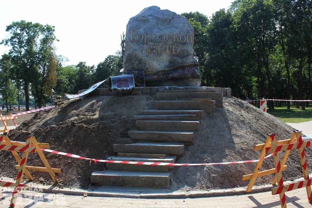 Как ранее писала «БГ», сад был заложен в 1835 году. Эта парковая зона в Бресте несколько раз меняла свое название и неоднократно закрывалась. К празднованию 1000-летия было запланировано восстановление городского сада. Работы по благоустройству не прекращаются. Каждый день на пересечении улицы Ленина — проспекта Машерова — Брестской ТЭЦ ведутся работы. Старый речной порт перенесен из центра города, Набережная и городской сад «встретились». Дорожки уложены. Фонари установлены. Даже субботник проведен. Новый шаг — «украшение» валуна.