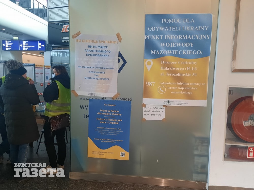 На центральном железнодорожном вокзале Варшавы размещен пункт помощи беженцам из Украины.